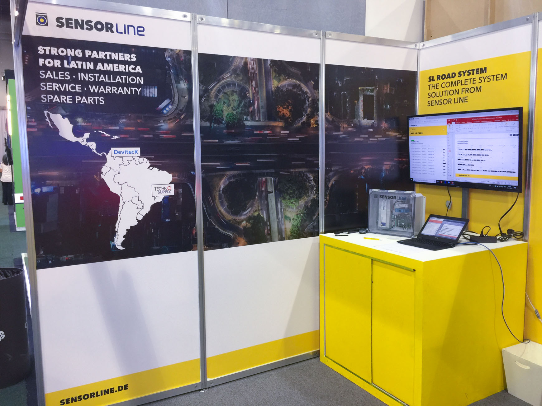 In 2018, Sensor Line participated for the first time at Intertraffic Mexico. Together with our long time associates Deviteck from Colombia and Techno Supply from Brasil we had the intention to leave a very good first impression at the exhibition. For Sensor Line and its partners, the fair was a great success where many new and promising business contacts were made. Sensor Line spotlighted its brand new classification system – SL Road System – that is an important step for Sensor Line in becoming a system provider. Alongside its SL Road System, Sensor Line displayed some of its unique and reliable Fiber Optic Road Sensors, which are noise free, EMV immune and visibility independent. However, the many new products were not the only topic for Sensor Line on the fair. In addition to its operative segment, Sensor Line discussed with interested and potential clients its forward-looking strategy for the Latin American sector in 2019. Be excited to see what else we have to offer you. For further information, you can contact us at info@sensorline.de