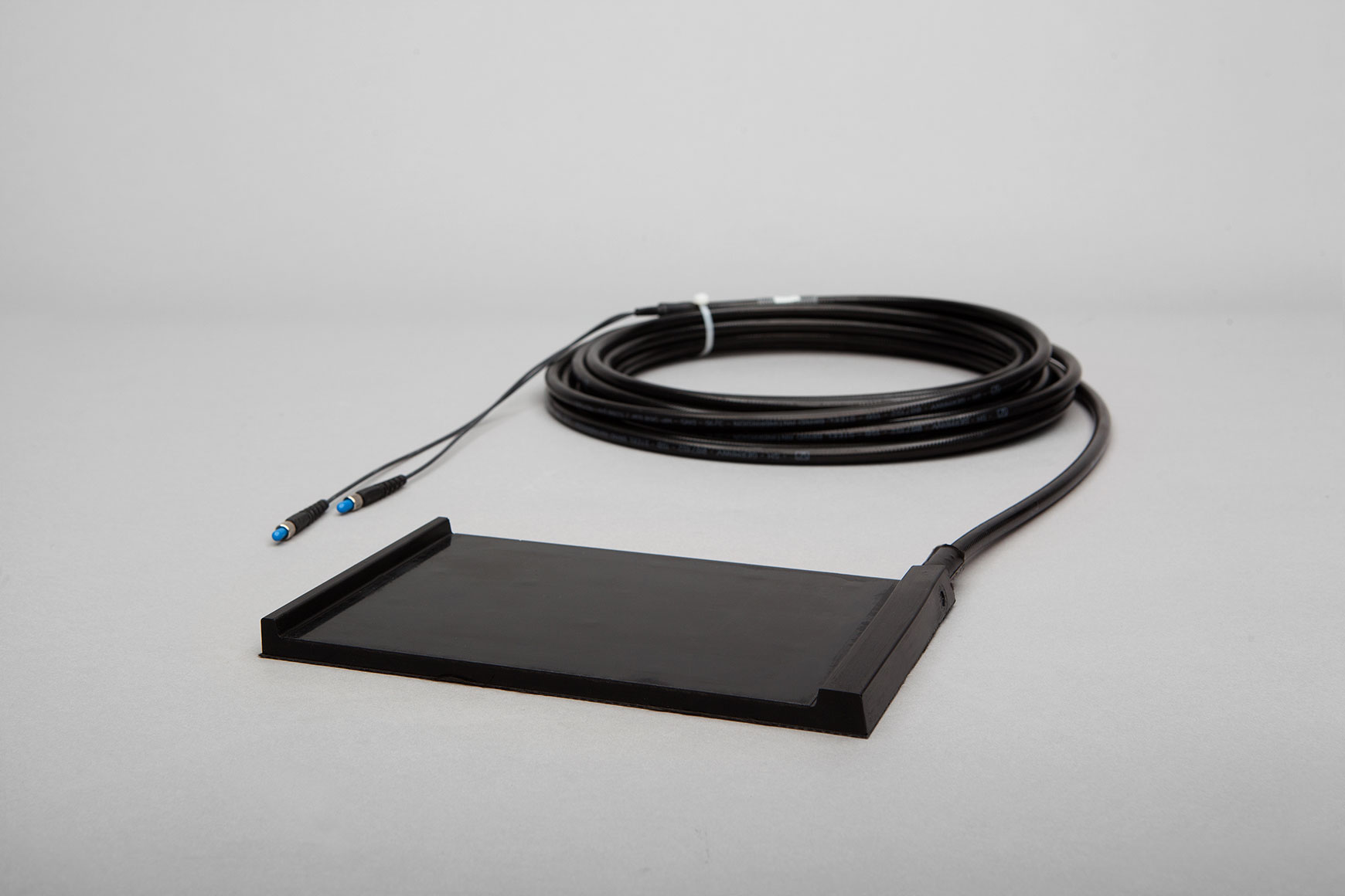A ready to install SL FORPS comprises the sensor pad, a fiberoptic feeder cable in a metal housing terminated with fiber optic connectors. To operate the sensor it is connected to a Sensor Line opto-electronic interface, the XD-1100.